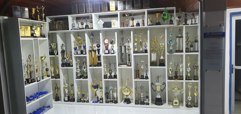 Troféus, medalhas e placas da galeria “Ayrton José dos Santos”