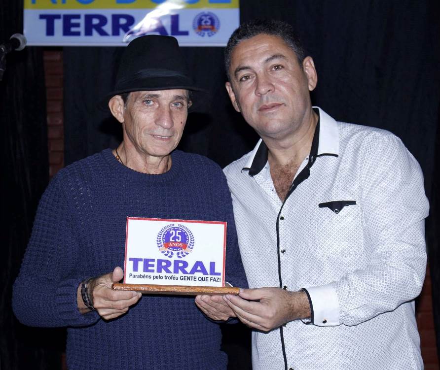 Zenilton sendo homenageado pelo diretor do TERRAL, jornalista Daniel Porto