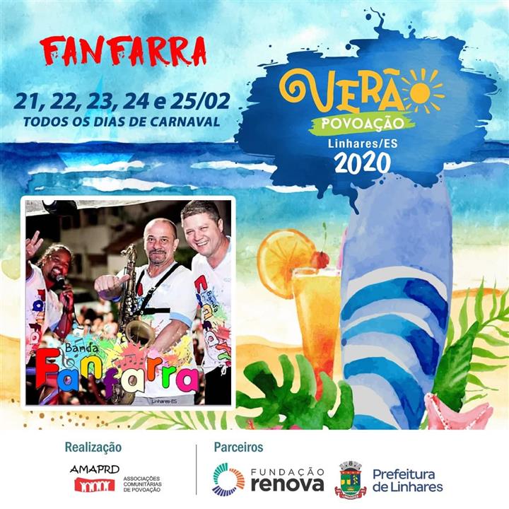 Além de animar os finais de semana de Povoação durante o verão, o mini trio/banda Fanfarra será uma das atrações do carnaval no balneário, se apresentando no período de 21 a 25 de fevereiro. Os foliões já se organizam para os cinco dias de festejos.