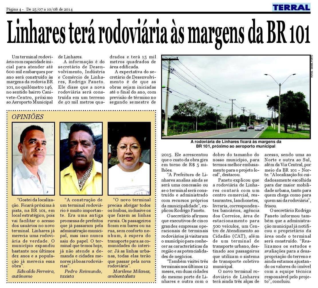 Página do Jornal TERRAL de 2014 divulgando a (possível) obra