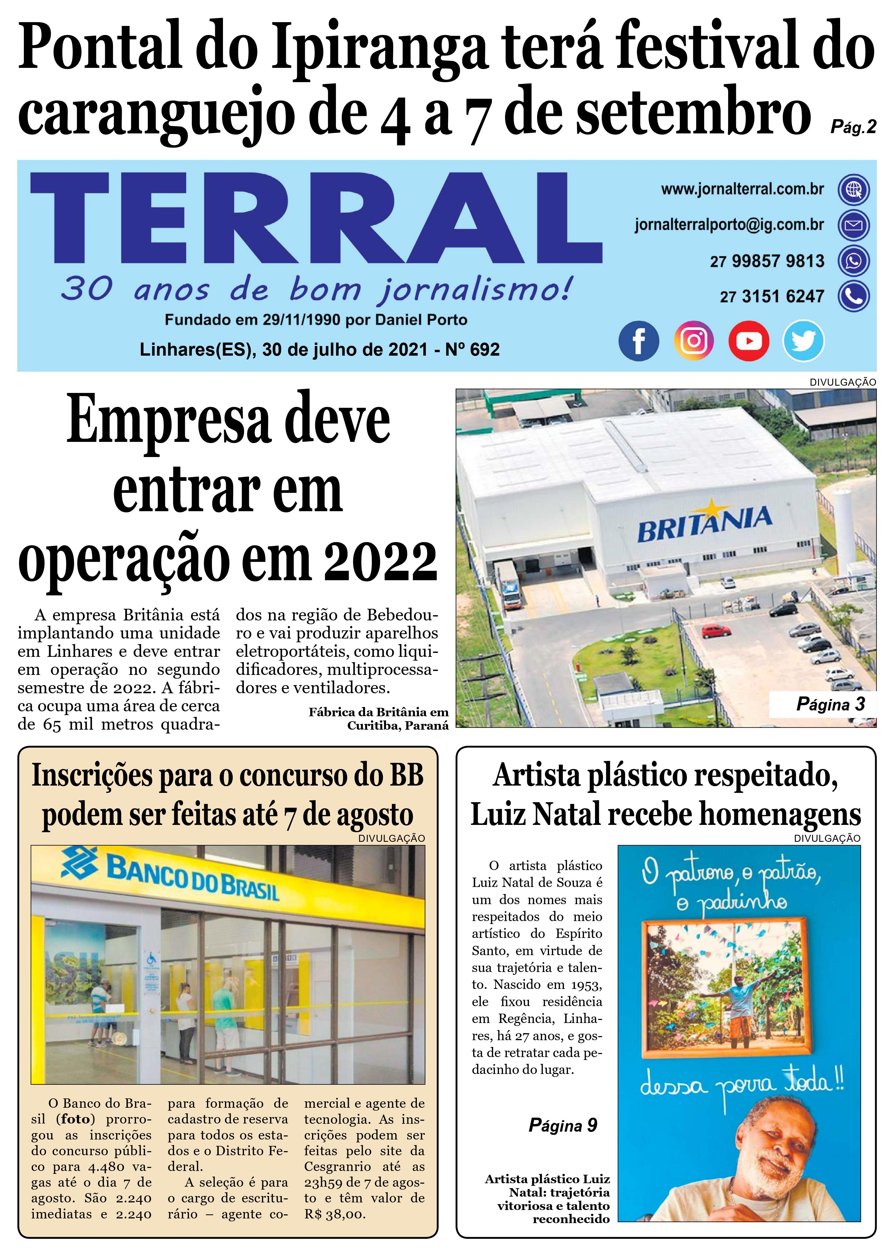 Clique aqui e leia na íntegra a edição nº 692 do Jornal TERRAL, de 30 de julho de 2021.