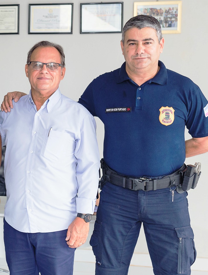 O GCM José Maria Furtado com o secretário de Segurança Pública e Defesa Social de Linhares, Coronel Jones da Silva de Freitas Mattos