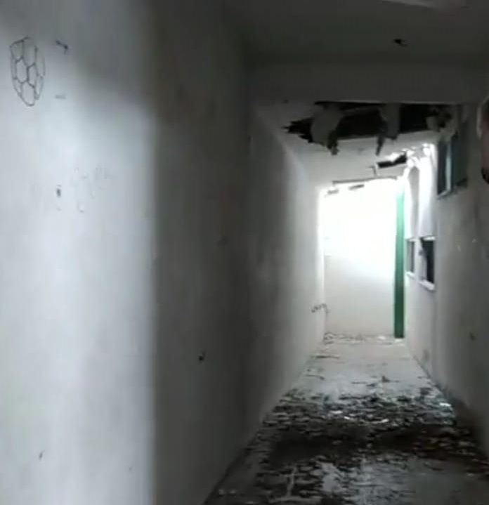 As imagens das instalações internas do ginásio não deixam dúvidas da situação de abandono