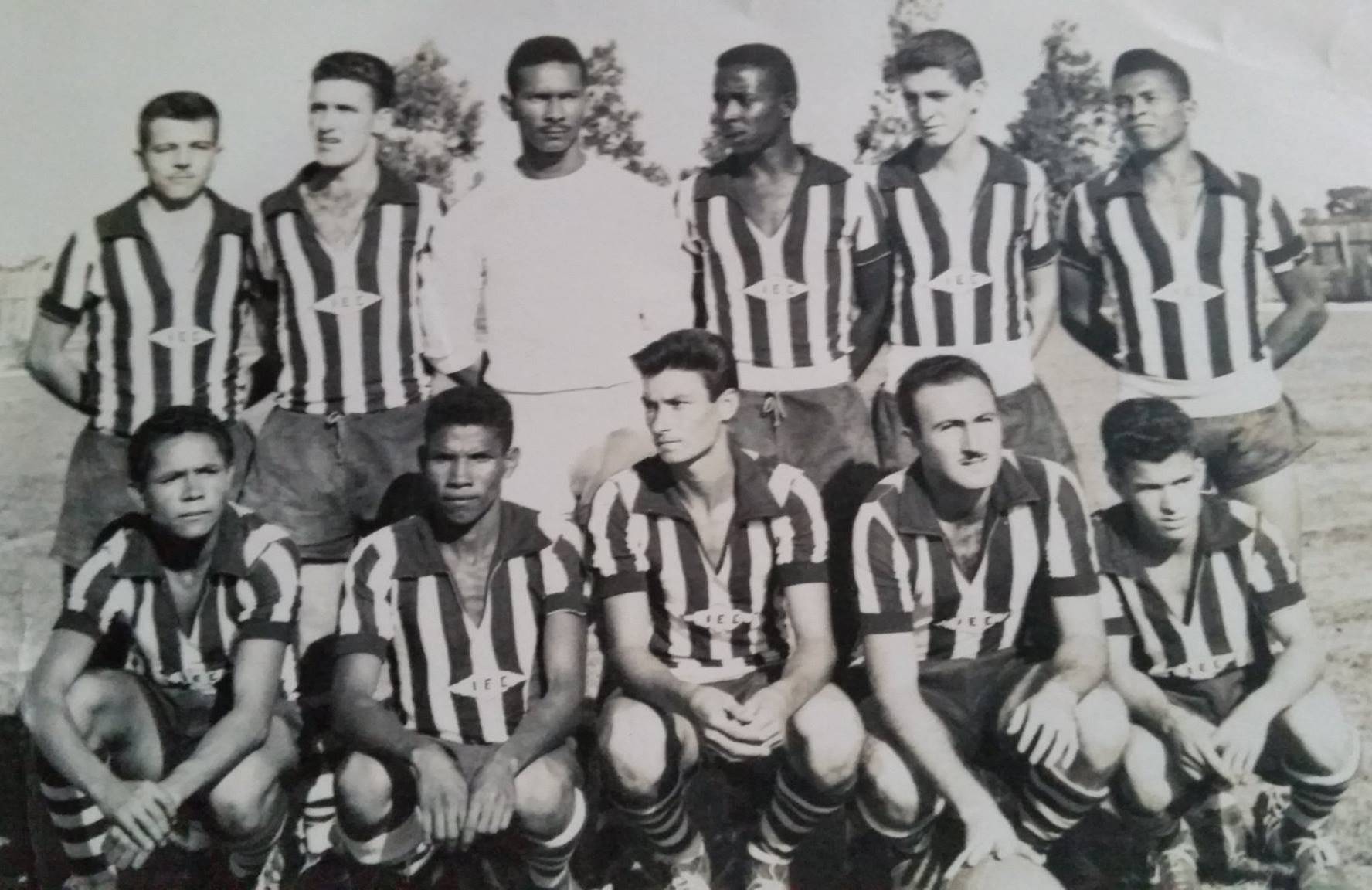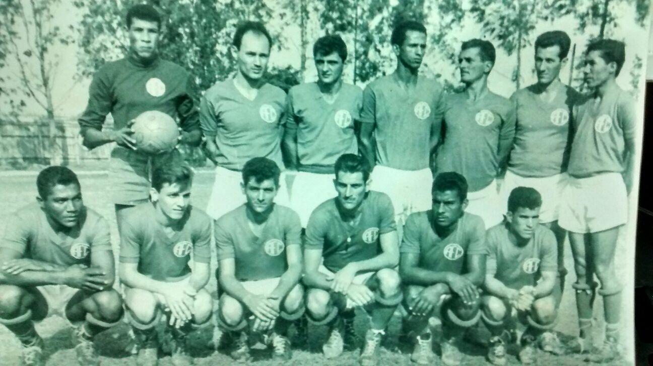 Defendendo o América e o Industrial. Em ambas as fotos é o último, agachado, da esq. p/ a dir.