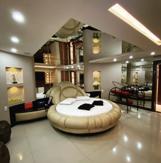 As opções são variadas. Tem suíte standard, classe A com hidromassagem e sauna, luxo e oriental. A mais sofisticada é a mansão, que conta com piscina, hidromassagem, sauna e discoteca.