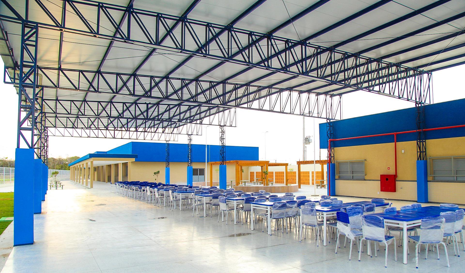 Escola possui pátios cobertos e ao ar livre; obra custou mais de R$ 14 milhões