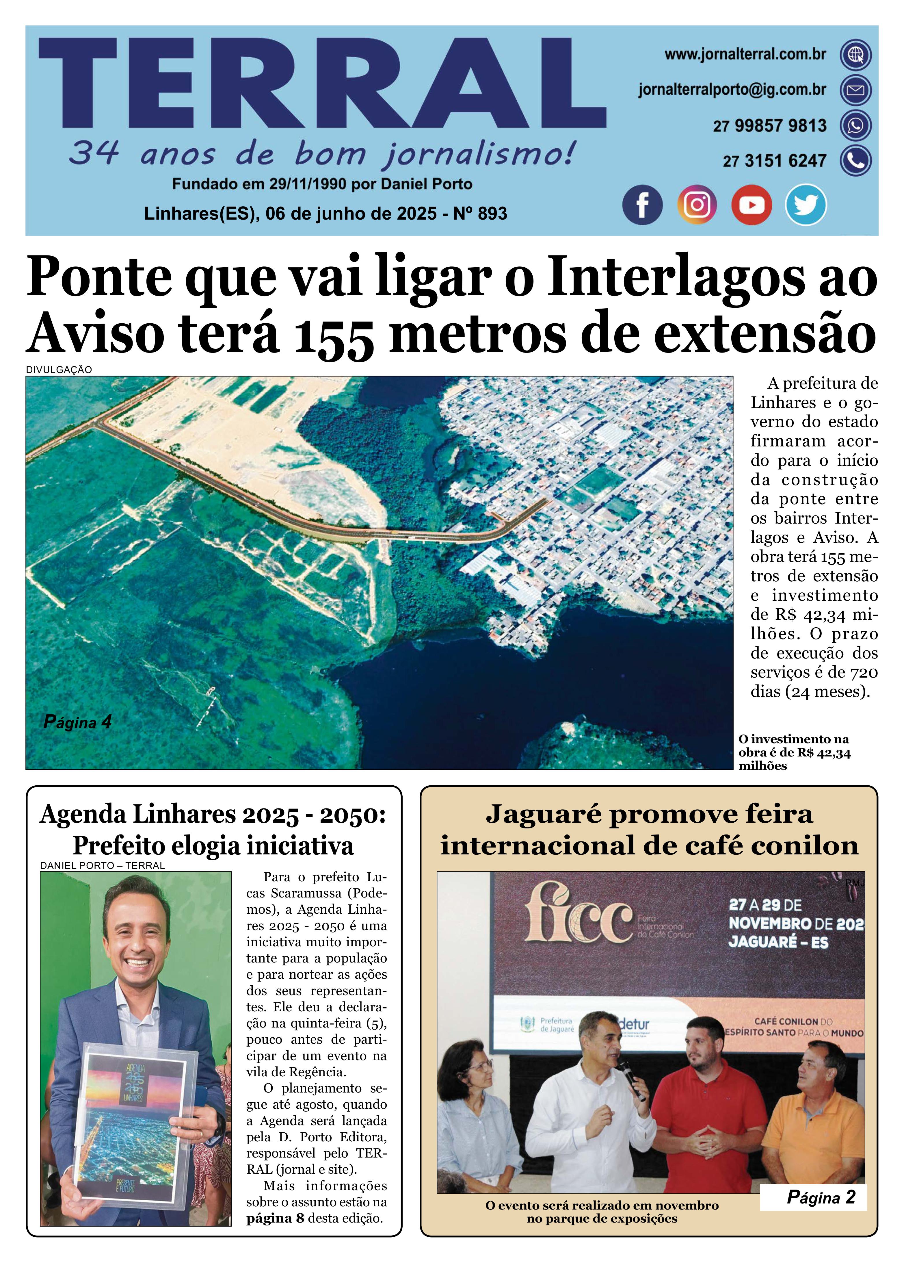 (27) 3151 6247 / 99857 9813 contato@jornalterral.com.br