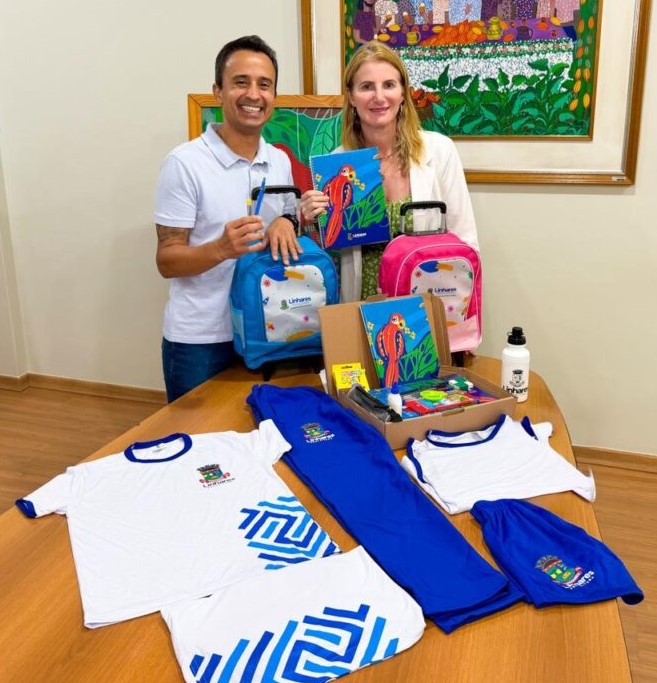 O prefeito de Linhares, Lucas Scaramussa, anunciou na quarta-feira (17) a distribuição de 28 mil kits escolares aos alunos da rede municipal. Ao lado da secretária de Educação, Rosinéia Bergamaschi, ele destacou que a prefeitura vai entregar, além dos dois conjuntos de uniformes, um kit escolar completo de material para cada aluno, incluindo tênis.