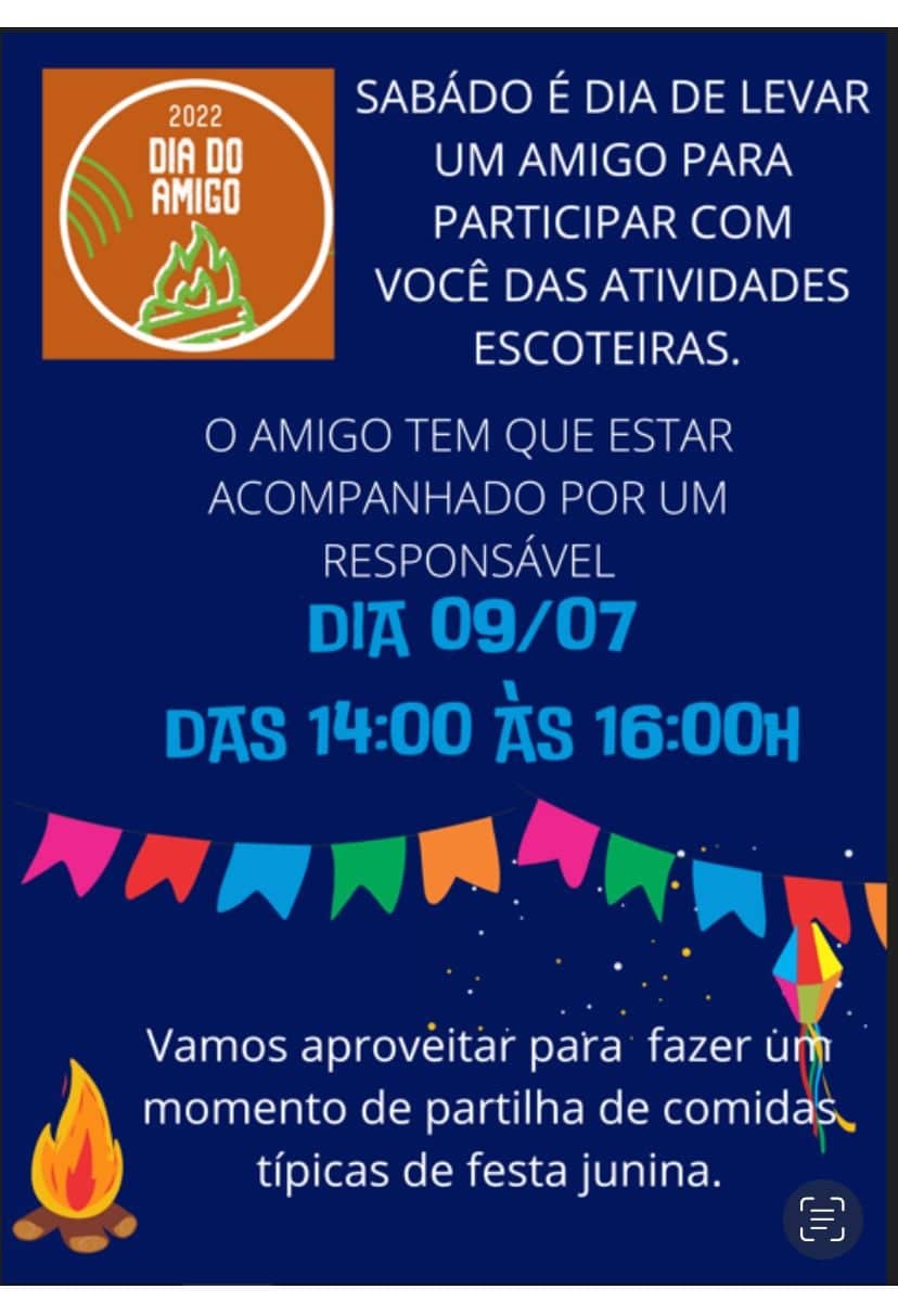 “Vamos aproveitar para fazer um momento de partilha de comidas típicas de festa julina”, informa o GEL, uma organização para a prática do escotismo fundada em 2006, que funciona na guarda civil, ao lado da faculdade Pitágoras.