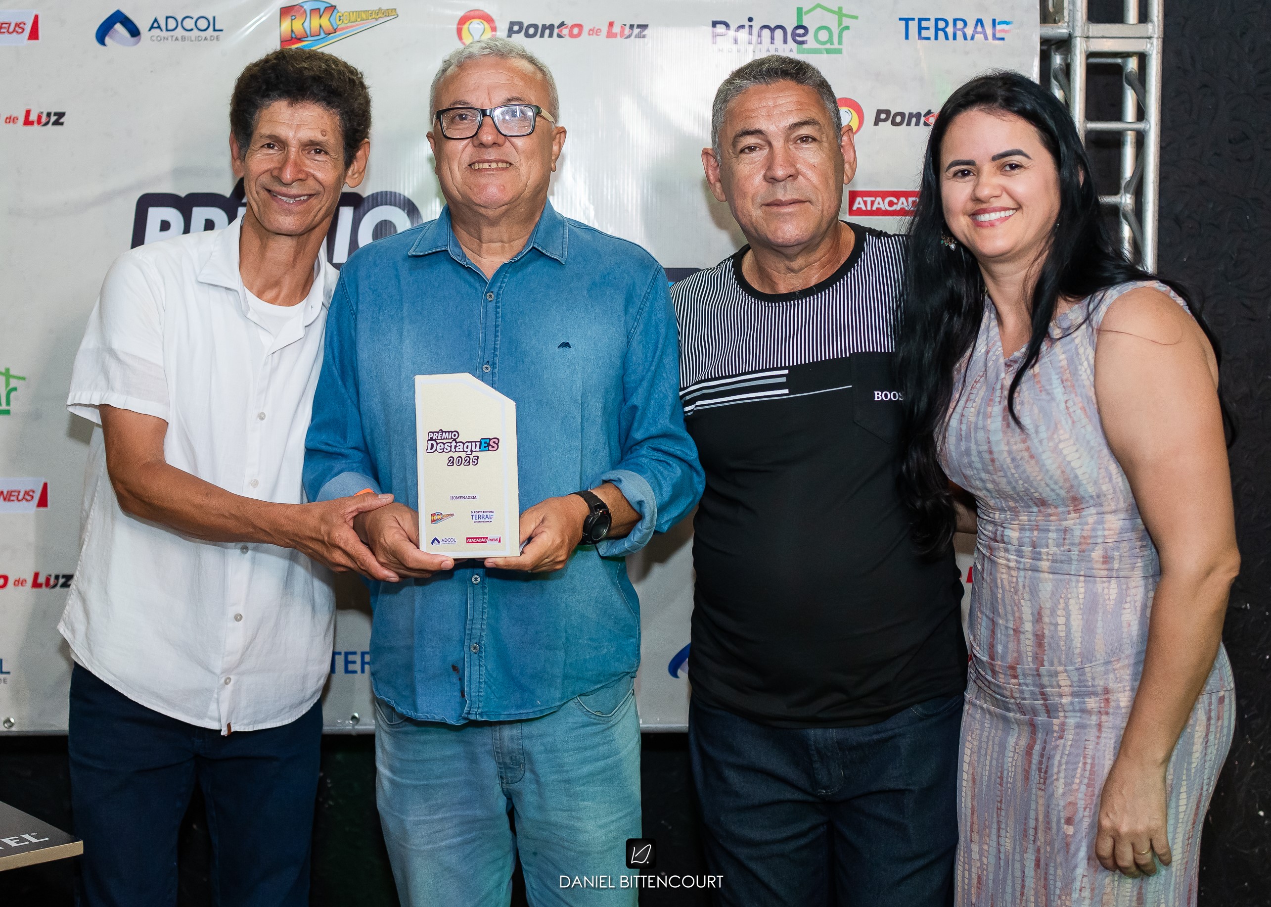 Francisco Emmanuel com o músico Dalcenir (E) e o casal Alciene - Daniel Porto na entrega da premiação