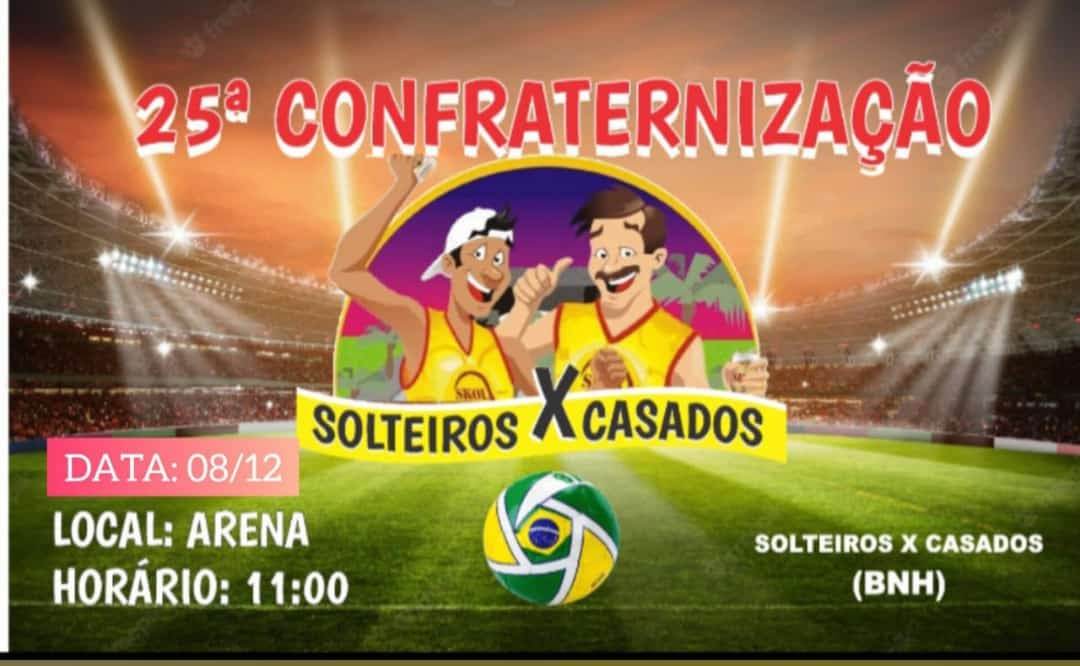O tradicional encontro Solteiros X Casados do Bairro Novo Horizonte (BNH), em Linhares, passou do dia 3 para 8, dia de Nossa Senhora da Imaculada Conceição. O evento vai ter início às 11 horas, na Arena Futebol, no bairro Três Barras, e em seguida haverá a confraternização – no mesmo local.